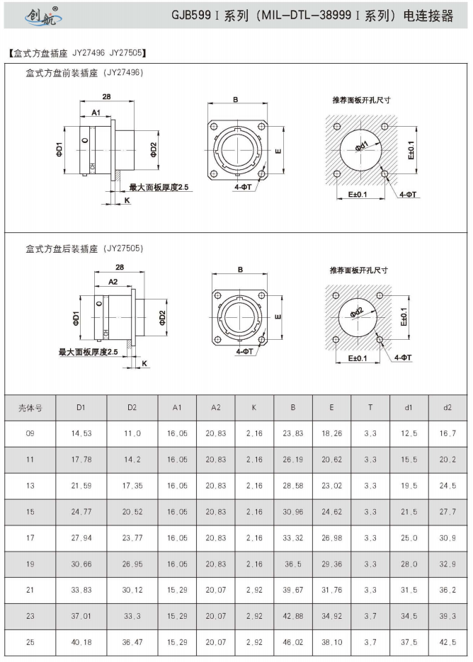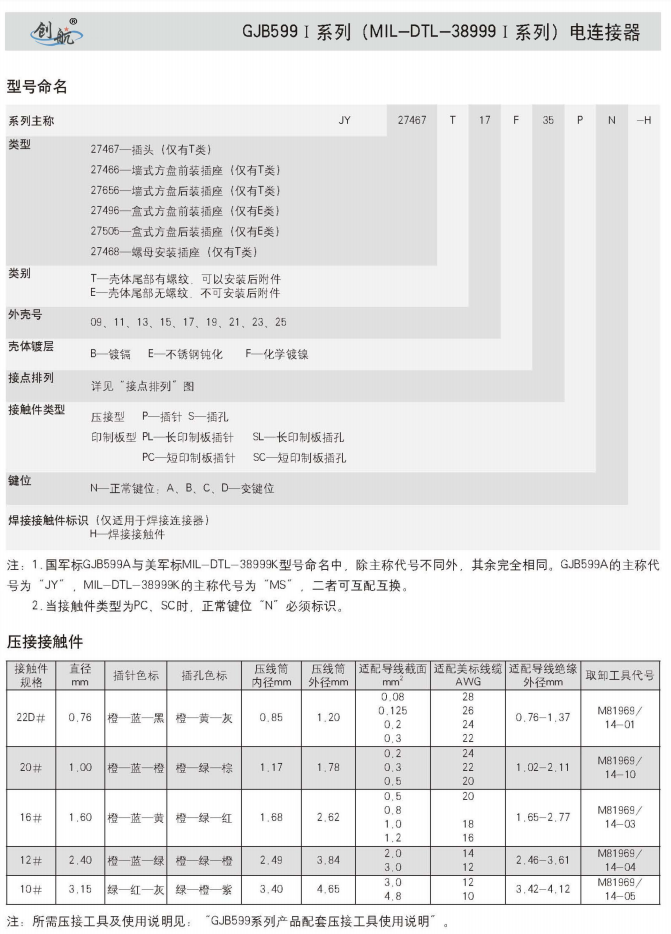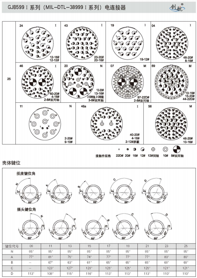 符合GJB599A(MIL-DTL-38999K)Ⅰ系列
