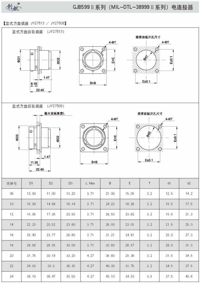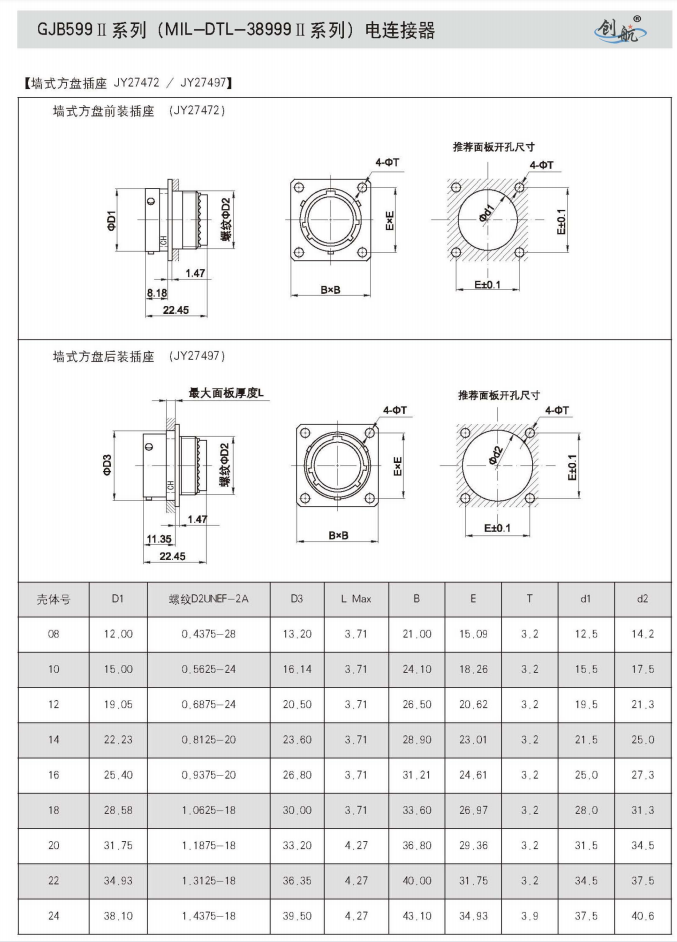符合GJB599A(MIL-DTL-38999K)Ⅱ系列
